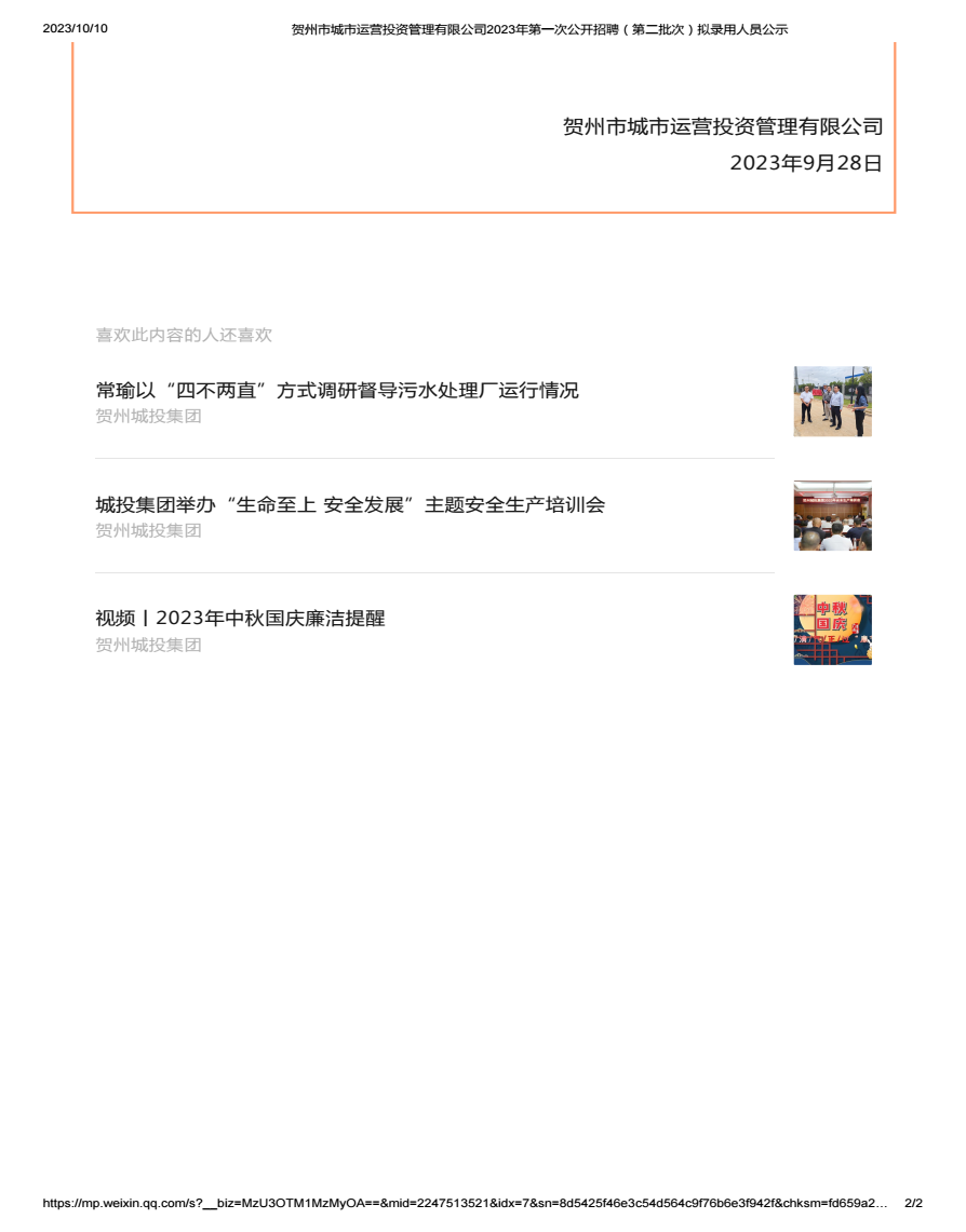 上一篇:賀州市城市運(yùn)營(yíng)投資管理有限公司2023年第一次招聘公告(第二批次)