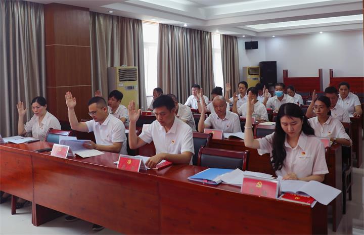 會(huì)議在激昂的國歌中拉開序幕,全體黨員莊重肅立,齊唱《中華人民共和國國歌》。