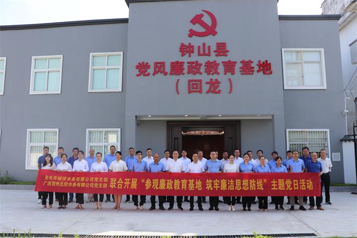 為進一步加強黨風廉政建設,增強黨員干部廉潔自律意識,筑牢拒腐防變思想防線,全面深化清廉建設各項工作。8月3日上午,賀州市城投水務有限公司黨支部與廣西賀州北控水務有限公司黨支部聯合組織黨員干部到鐘山縣廉政教育基地(回龍),開展廉政警示教育主題黨日活動。
